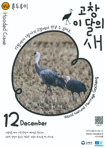 [뉴스노크=김인호 기자] 고창군이 12월 ‘고창갯벌 이달의 새’로 멸종위기 철새인 흑두루미(학명 Grus monacha)를 선정하고 겨울철 고창갯벌의 생태적 중요성을 알리기 위한 캠페인을 진행한다고 2일 밝혔다.