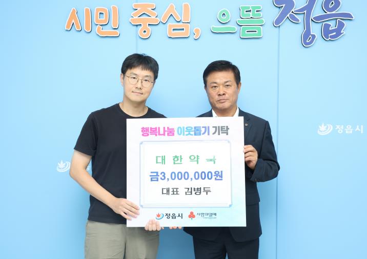 이학수 시장은 “지역사회 발전과 소외계층 지원에 도움을 주신 대한약국에 깊이 감사드린다”며 “나눔 문화가 꾸준히 확산되고 있는 가운데 정읍시가 더욱 따뜻하고 서로를 배려하는 공동체로 발전할 수 있도록 모든 노력을 다하겠다”고 말했다.