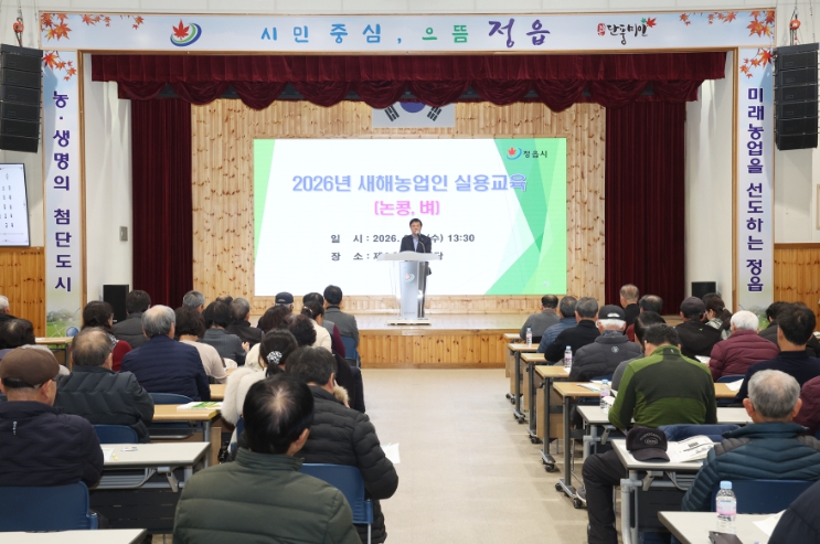 이학수 시장은 “급변하는 농업 환경 속에서도 배움에 대한 열정으로 참여해 주신 농업인들께 감사드린다”며 “이번 교육에서 습득한 기술과 정보가 2026년 정읍 농업의 풍년 농사를 이끄는 든든한 밑거름이 되기를 기대한다”고 말했다.