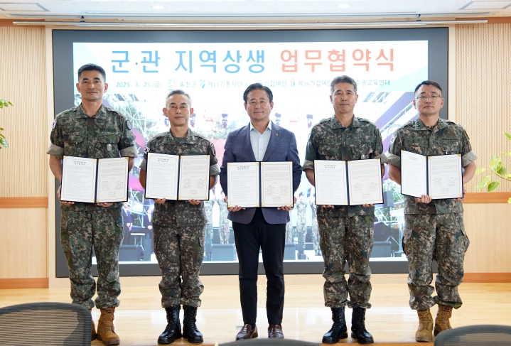 이날 협약식은 신영재 군수와 부대장 간의 인사말을 시작으로 협약 주요 내용 설명, 협약서 서명, 기념 촬영을 진행했으며, 이후 관내 식당에서 오찬 간담회를 통해 상호 소통의 시간을 가졌다.