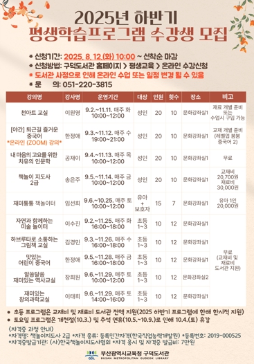 ▲ 부산구덕도서관, 2025년 하반기 평생학습프로그램 운영 |
