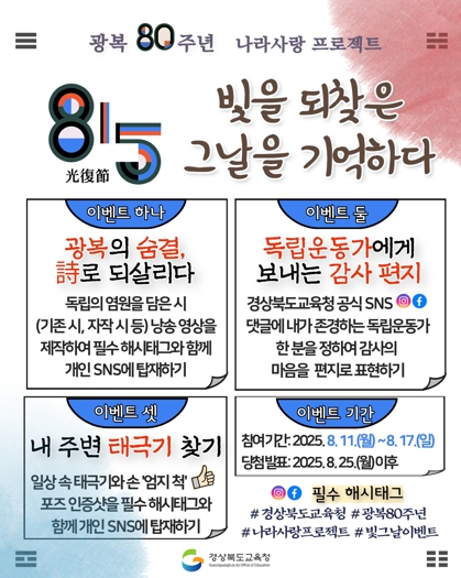 ▲ 경북교육청, 광복 80주년 맞아 ‘빛을 되찾은 그날을 기억하다’ 나라 사랑 온라인 이벤트 진행! |