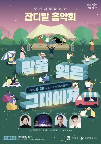 수원시 관계자는 “푸른 잔디 위에서 콘서트를 즐기며 잠시나마 무더위를 잊을 수 있을 것”이라며 “많은 시민이 공연에 함께하길 바란다”고 말했다.