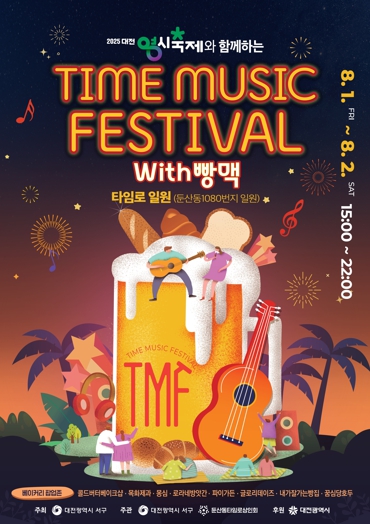 [뉴스노크=김인호 기자] 대전 서구는 도심 속 여름 축제인 ‘2025 타임뮤직 페스티벌 with 빵맥’을 오는 8월 1일부터 2일까지 이틀간 대전 서구 타임로 일원(둔산동 1080번지 일원)에서 펼친다고 전했다.