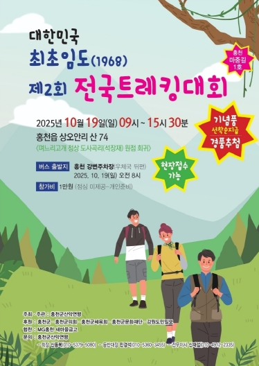 [뉴스노크=김인호 기자] 홍천군은 ‘대한민국 최초임도(1968) 제2회 전국트래킹대회’가 10월 19일 오전 9시 홍천군 상오안리 며느리 고개 일원에서 개최된다고 밝혔다.
