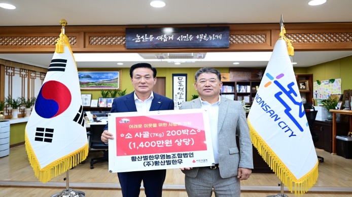 이날 기탁식에 참여한 황산벌 한우영농조합법인 이병익 대표는 "민족 대명절 추석을 맞아 지역의 어려운 이웃들에게 조금이나마 힘이 되고 싶어 기탁을 결정했다"며, "작은 정성이지만 따뜻한 한 끼가 되어 모두가 행복하고 풍요로운 명절을 보내시길 바란다"고 나눔의 뜻을 밝혔다.