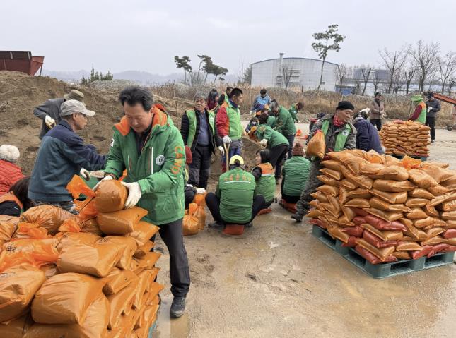 | ▲ 문경시 자율방재단, 폭설 대비 모래주머니 제작 |