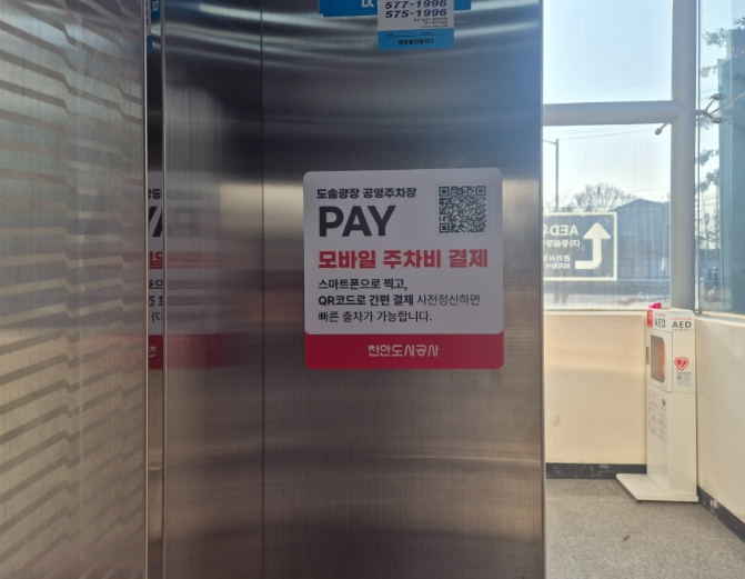 | ▲ 1. 도솔광장 공영주차장에 부착된 QR코드 |