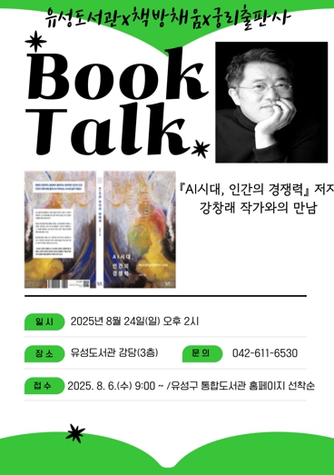 [뉴스노크=김인호 기자] 대전 유성구는 오는 24일 유성도서관에서 ‘AI시대, 인간의 경쟁력’의 저자인 강창래 작가를 초청해 북토크 강연을 개최한다.
