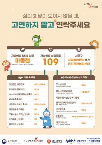 [뉴스노크=김인호 기자] 광주광역시는 정신건강 위기 상황에 놓인 시민이 언제든 도움받을 수 있도록 다양한 지원체계와 맞춤형 서비스를 마련해 적극 추진하고 있다.