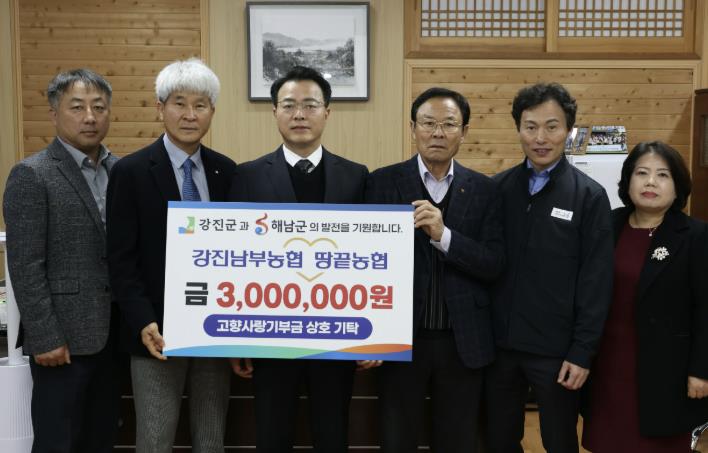 이번 상호 교차 기부는 강진-해남 두 지역의 우의를 다지고 고향사랑기부 문화 확산에 협력을 위해 강진남부농협, 땅끝농협 임직원의 뜻을 모아 각 300만원의 기부액이 마련됐다.