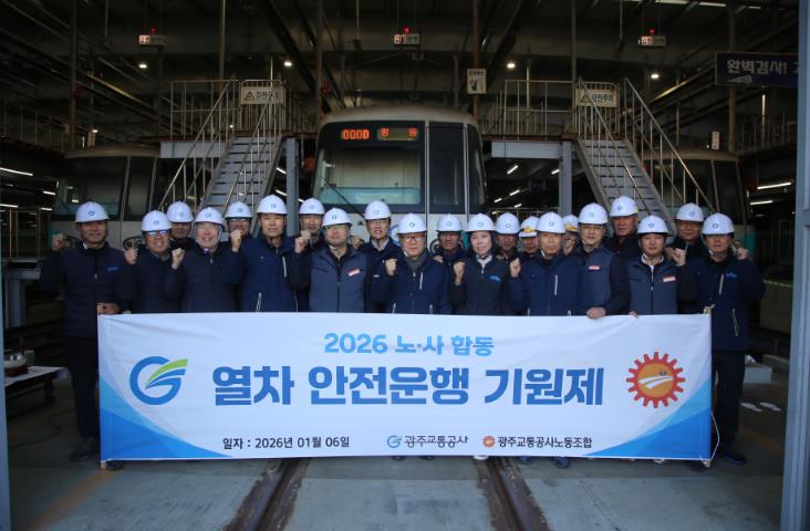 [뉴스노크=김인호 기자] 광주교통공사가 6일 광주시 동구 용산차량기지에서 신년 맞이 ‘노사 공동 도시철도 안전 운행 기원제’를 개최하고, 2026년 무사고, 무재해 달성을 위한 강력한 실천 의지를 다졌다.