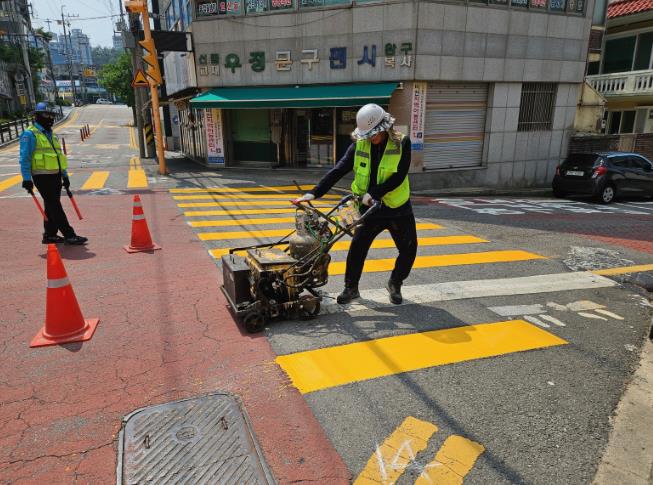 이 사업은 지난 2023년 7월 ‘개정 도로교통법 시행규칙’에 어린이보호구역의 시작과 끝을 명확히 인식할 수 있도록 ‘기·종점 노면표시’를 명문화함에 따라 ‘노란색 횡단보도’ 정비와 함께 운전자의 시인성을 높여 어린이 교통사고 예방에 기여하고자 추진됐다.