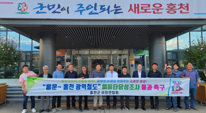 [뉴스노크=김인호 기자] 홍천군 이장연합회(연합회장 김진훈)가 지난 7월 4일부터 정부 세종 청사에서 홍천철도 유치염원 릴레이 홍보 캠페인을 전개 중인 가운데 8월 25일(월) 용문~홍천 광역철도의 예비타당성조사 통과를 촉구하는 성명을 발표했다.