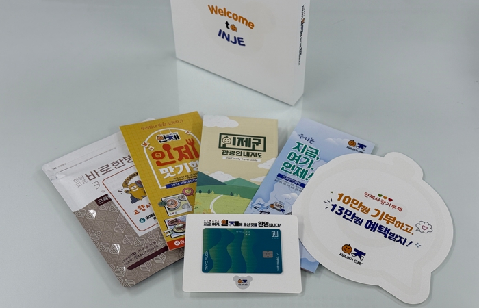 ‘웰컴박스’에는 △전입혜택 △고향사랑기부제 △지역 관광명소 및 맛집 정보 등이 담긴 홍보자료와 함께 인제군 카드형 지역화폐인 인제 채워드림카드 등이 담겨 있다.