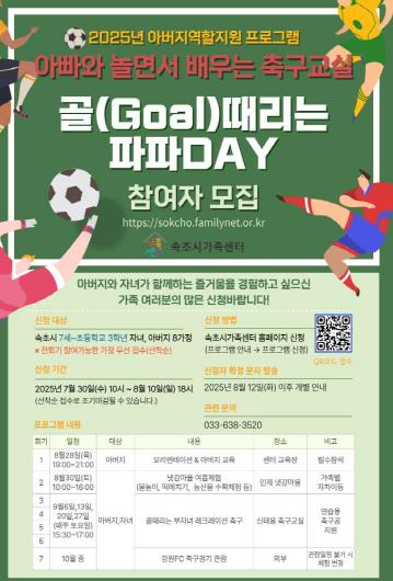 아버지 역할 지원 ‘골(Goal)때리는 파파 Day(데이)’ 프로그램은 8월부터 7세~초등학교 3학년 자녀와 아버지를 대상으로 운영된다.