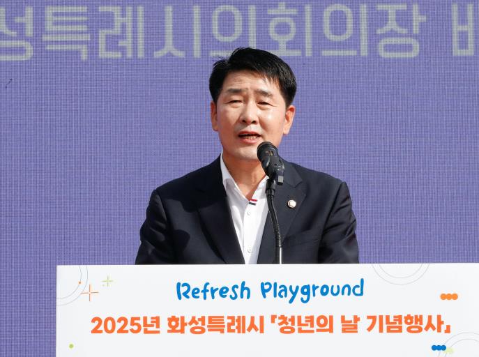 배정수 의장은 축사를 통해 “청년의 열정과 도전은 화성의 가장 빛나는 자산이며, 여러분의 오늘이 곧 도시의 내일이자 대한민국의 희망”이라며 “이번 기념식이 청년 스스로를 돌아보고 다시 도전하는 힘을 얻는 시간이 되길 바란다”고 말했다.