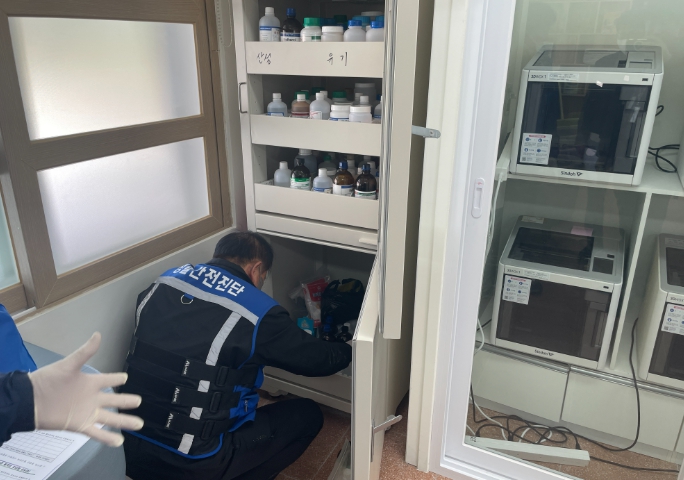 점검 항목에는 △안전관리계획 수립 여부 △안전교육 실시 현황 △물질안전보건자료(MSDS) 비치 여부 △비상샤워기 등 안전설비 작동 상태 △시약․폐시약 관리 실태 등이 포함됐으며, 현장의 의견도 함께 수렴해 안전관리 실태를 꼼꼼히 확인했다.