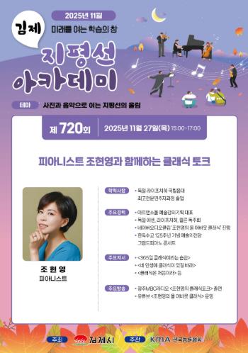 [뉴스노크=김인호 기자] 다양한 분야의 명사를 초청해 시민의 문화적 소양의 높이고 삶의 품격을 더하는 교양 강좌인 김제지평선아카데미가 오는 27일 제720회 강좌에 조현영 아트앤소울 예술강의기획 대표를 초청해 “피아니스트 조현영과 함께하는 클래식 토크”라는 주제로 강연을 진행한다.