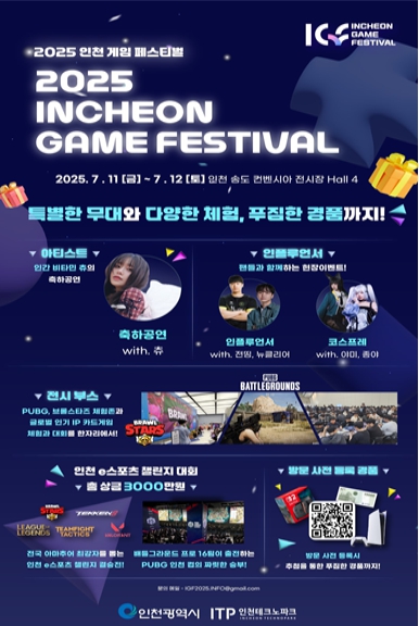 [뉴스노크=김인호 기자] 인천광역시는 인천시가 주최하고 인천테크노파크가 주관하는 ‘2025 인천 게임 페스티벌’을 오는 7월 11일 개최한다고 밝혔다.
