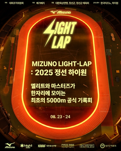 [뉴스노크=김인호 기자] 정선군은 오는 8월 23일부터 24일까지 국내 육상 역사에 새로운 장을 여는 ‘미즈노 라이트랩 2025 정선 하이원대회’를 정선종합경기장에서 개최한다고 밝혔다.
