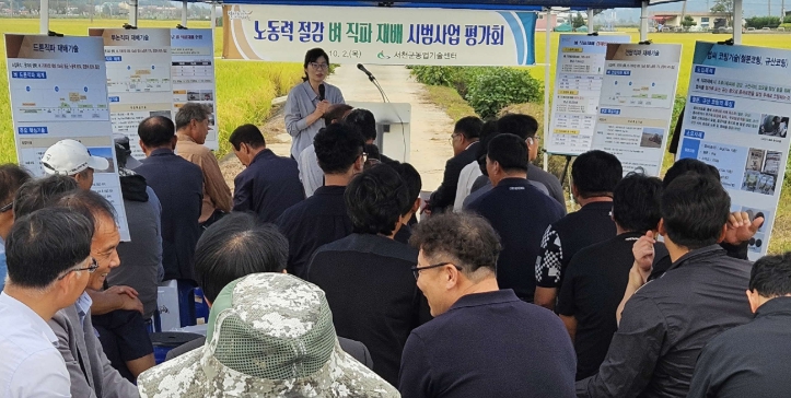 이날 평가회에는 직파재배 농업인 50여명이 참석한 가운데 직파 시범사업 추진성과 및 분석, 농가사례 발표, 유형별 직파 전시포장의 생육상황을 비교 ・평가하는 시간을 가졌다.