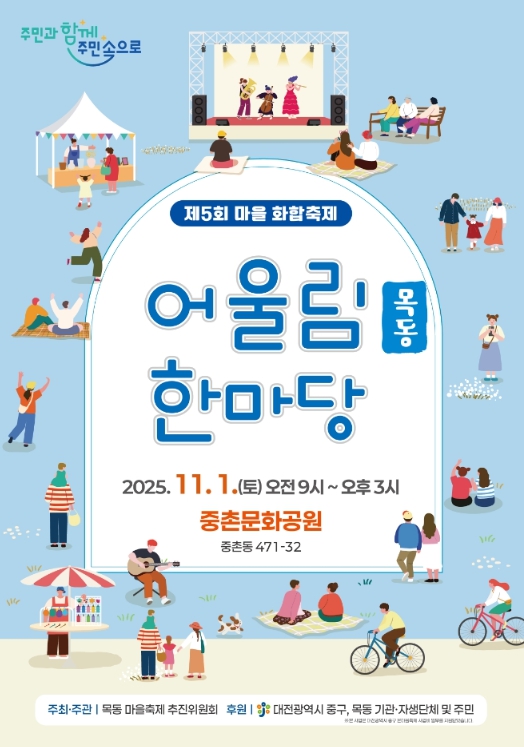 [뉴스노크=김인호 기자] 대전 중구 목동은 오는 11월 1일, 중촌문화공원에서‘2025년 제5회 목동 어울림 한마당 축제’를 개최한다고 밝혔다.