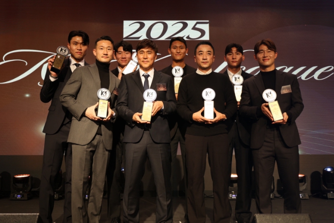 [뉴스노크=김인호 기자] 10일 오후 2시, 서울 메이필드호텔에서 열린‘2025 K3·K4리그 어워즈’에서 김해FC2008 선수단이 최우수 지도자와 베스트일레븐, 영 플레이어 부문에서 8명의 수상자를 배출하며 축구 전통 강호의 저력을 증명했다.