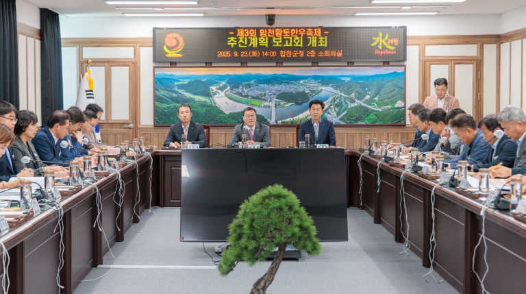 보고회에는 김윤철 군수를 비롯한 간부 공무원과 합천축협 관계자 등 30여 명이 참석했다. 축제 대행업체가 준비 중인 세부 추진계획을 발표한 뒤, 주차·교통·안전·홍보 등 분야별 준비사항을 점검하고 예상되는 문제점과 대응 방안을 논의했다. 참석자들은 의견을 교환하며 긴밀히 협력해 내실 있는 축제를 만들기로 뜻을 모았다.
