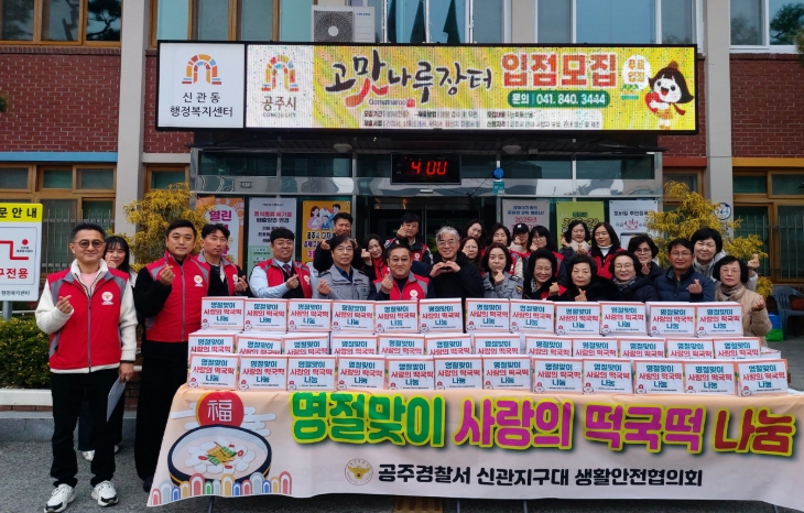 이정열 신관지구대생활안전협의회 회장은 “작은 정성이지만 어르신들이 따뜻한 떡국 한 그릇을 드시며 건강하고 행복한 새해를 맞이하시길 바라는 마음으로 준비했다”며 “앞으로도 지역사회의 안전과 나눔을 위해 꾸준히 노력하겠다”고 말했다.