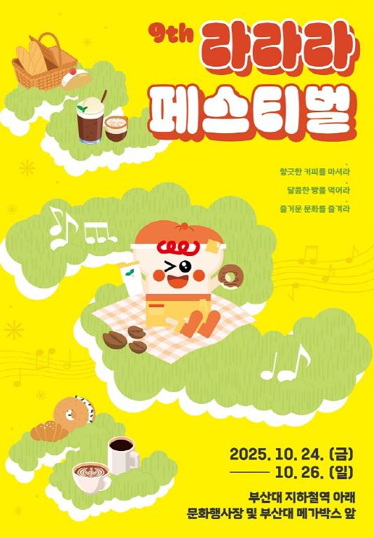 [뉴스노크=김인호 기자] 부산시 금정구는 “일상의 즐거움을 부르다”를 주제로 한 제9회 라라라 페스티벌이 오는 10월 24일부터 26일까지 부산대 지하철역 아래 온천천 문화행사장과 부산대 메가박스 앞 일원에서 열린다고 2일 밝혔다.
