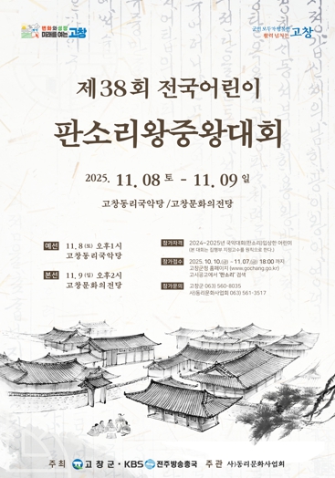 [뉴스노크=김인호 기자] 전북 고창군이 올해의 어린이 판소리 왕중왕을 가리는 ‘제38회 전국 어린이판소리왕중왕대회’ 참가자를 오는 11월7일까지 모집한다.