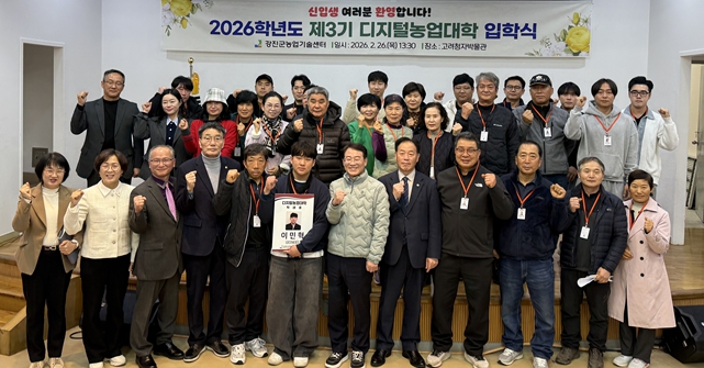 [뉴스노크=김인호 기자] 강진군농업기술센터가 지난달 26일 고려청자박물관 시청각실에서 ‘2026년 제3기 디지털농업대학 입학식’을 열고 본격적인 교육의 시작을 알렸다.