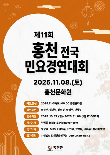 [뉴스노크=김인호 기자] 홍천군은 11월 8일 홍천문화원에서 ‘제11회 전국민요경창대회’를 개최한다고 밝혔다.