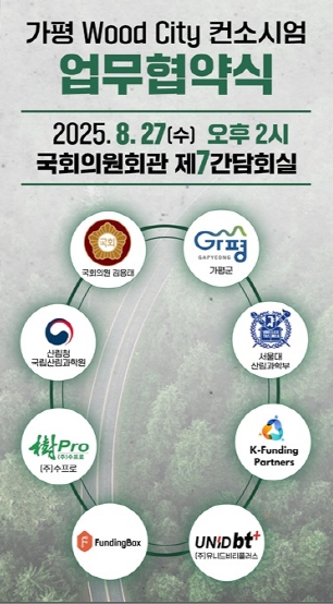 이날 협약식에는김용태 의원과 김용관 국립산림과학원장, 서태원 가평군수, 서울대학교 산림과학부 오정권 교수(환경재료과학전공), 산림녹화 및 목재전문기업인 ㈜수프로 박철홍 대표와 ㈜유니드비티플러스 한상준 대표, 국제펀딩기관인 FundingBox의 Sanyu Karani 대표와 케이펀딩파트너스 김경동 대표가 참석한다.