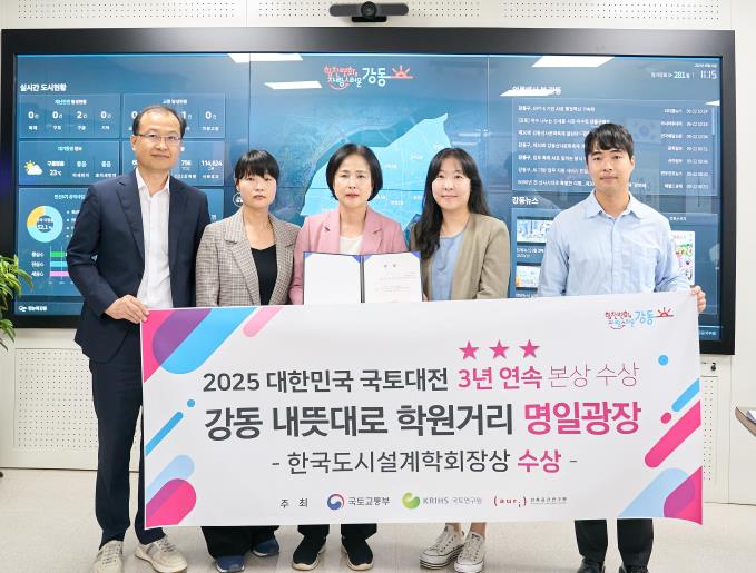 [뉴스노크=김인호 기자] 강동구는 지난 18일 ‘2025 대한민국 국토대전’에서 ‘강동 내뜻대로 학원가 명일광장 조성사업’으로 한국도시설계학회장상을 수상했다고 24일 밝혔다.