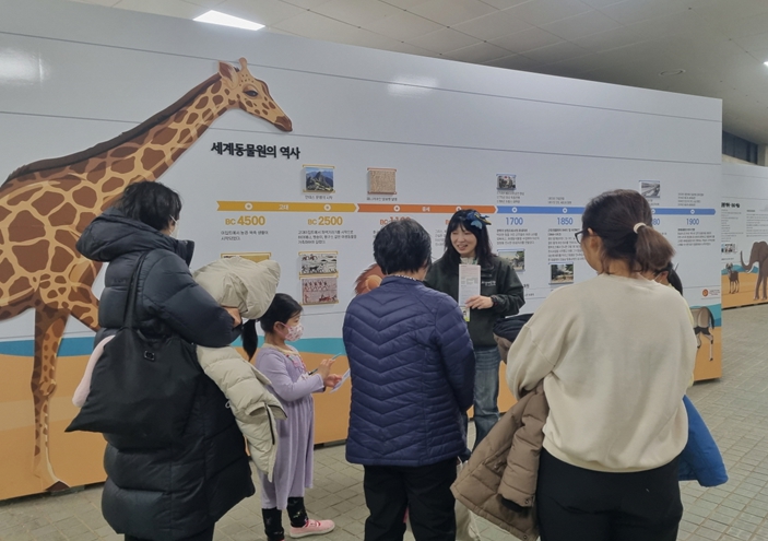 | ▲ 동물해설사가 동물원 역사존에서 해설하는 모습 |