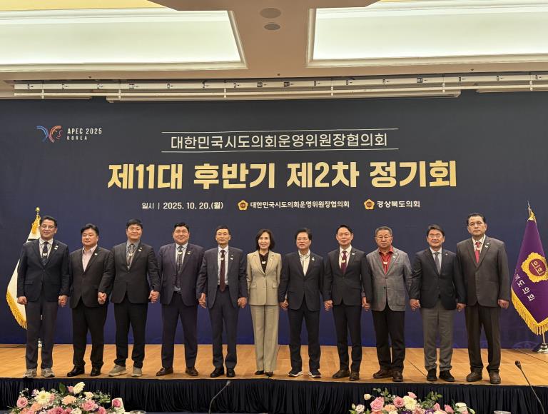 한편, 이번 회의에는 전국 12개 시도의회 운영위원장이 참석했으며, ▲Post-APEC 지역관광 활성화 ▲녹색건축물 신기술 장려 ▲공연자 안전 확보 ▲출산 친화 환경 조성 ▲감귤 열과 피해 보상 확대 등 총 7건의 지방의회 공동정책과제가 상정·논의됐다.