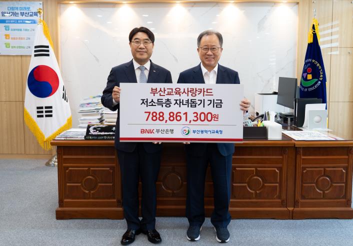 이번에 전달된 기금은 지난해 부산교육사랑카드 사용에 따라 적립된 7억 8천여 만원이다.