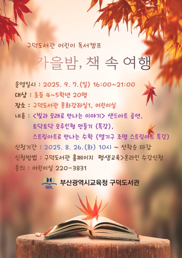 ▲ 부산구덕도서관, ‘가을밤, 책 속 여행’ 독서캠프 운영 |