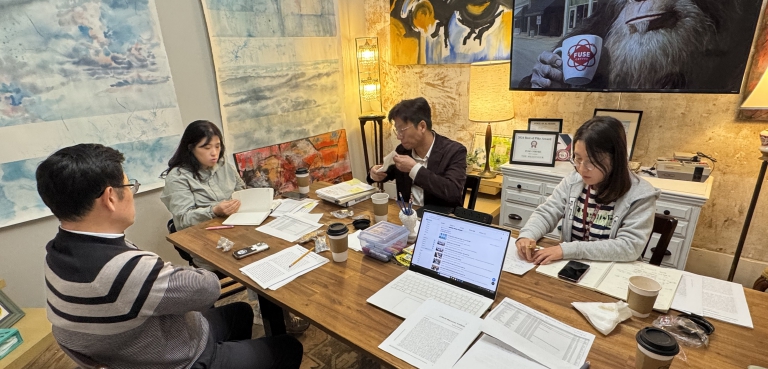 | ▲ 트로이대학교 자문위원 교수들과 함께 ‘전남 학생 글로컬 미래역량강화 연수’ 사후 평가를 진행하고 있다. |
