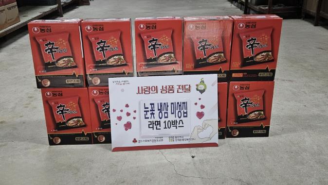 | ▲ 눈꽃 냉삼 미성집, 동두천시 상패동에 라면 10박스 후원 |