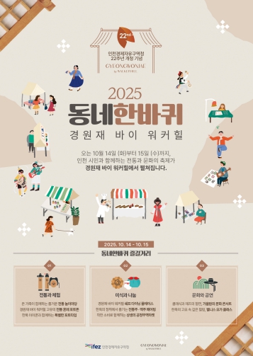 [뉴스노크=김인호 기자] 인천경제자유구역청은 오는 14일과 15일 이틀간 경원재 한옥호텔에서 제2회 경원재 시민페스티벌 ‘2025 동네한바퀴 경원재바이워커힐’을 개최한다고 밝혔다.