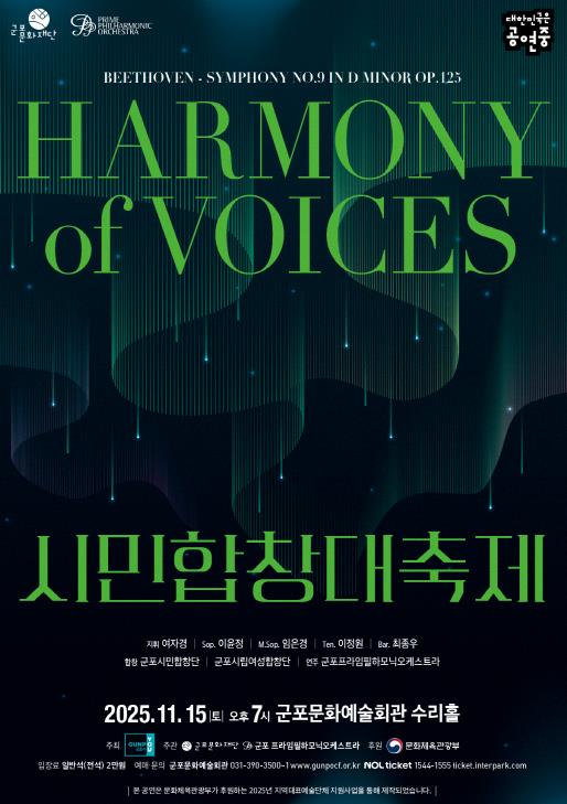 [뉴스노크=김인호 기자] 군포문화재단은 오는 11월 15일 오후 7시, 군포문화예술회관 수리홀에서 시민과 함께하는 대규모 클래식 공연 “2025 시민합창대축제”를 개최한다.