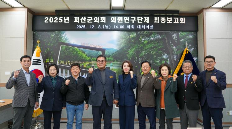 [뉴스노크=김인호 기자] 괴산군의회는 12월 8일 의회 대회의실에서 2025년 의원연구단체의 최종보고회를 개최하고, 한 해 동안 수행한 연구 활동을 공식적으로 마무리했다.