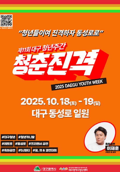 [뉴스노크=김인호 기자] 대구광역시는 10월 18일부터 19일까지 이틀간, 동성로 일대(CGV대구한일~동성로28아트스퀘어~구 중앙파출소)에서 ‘2025 대구청년주간’을 개최한다.