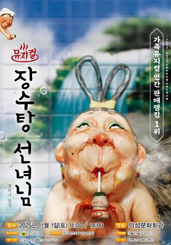 [뉴스노크=김인호 기자] 의성군은 오는 11월 1일, 의성문화회관에서 어린이뮤지컬 『장수탕 선녀님』을 오전 11시와 오후 2시, 총 2회에 걸쳐 공연한다고 밝혔다.