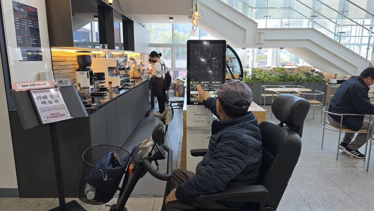 | ▲ 대구 중구, 배리어프리 키오스크·경사로 설치로 장애친화 도시 조성 박차(중구 청라국민체육센터 내 카페 청라 모습) |