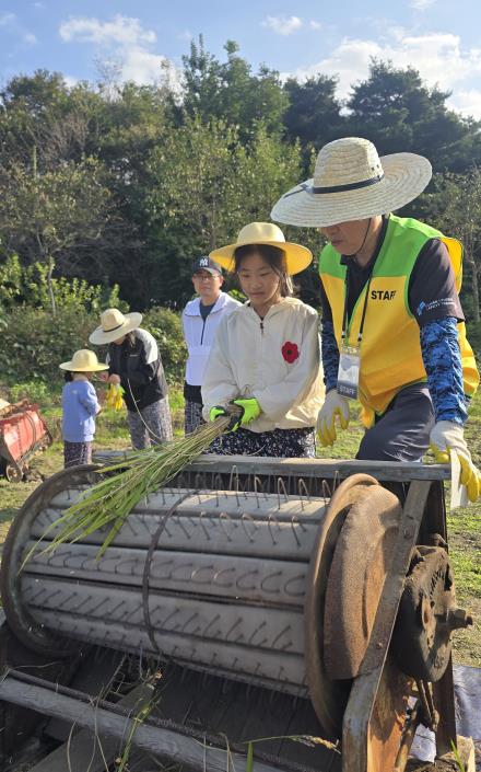 가족 단위 30명이 참여한 이번 행사에서는 황금빛 들녘에서 직접 벼를 베는 전통적인 수확 과정을 체험하고 옛날 방식의 탈곡으로 농부들의 수고로움과 지혜를 느끼는 소중한 시간을 가졌다.