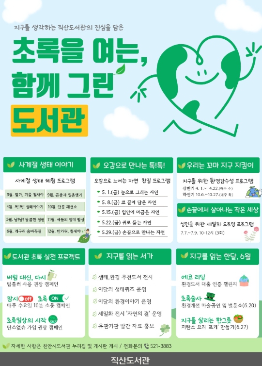 | ▲ 1. 천안직산도서관 ‘초록을 여는, 함께 GREEN 도서관’ 홍보문. |